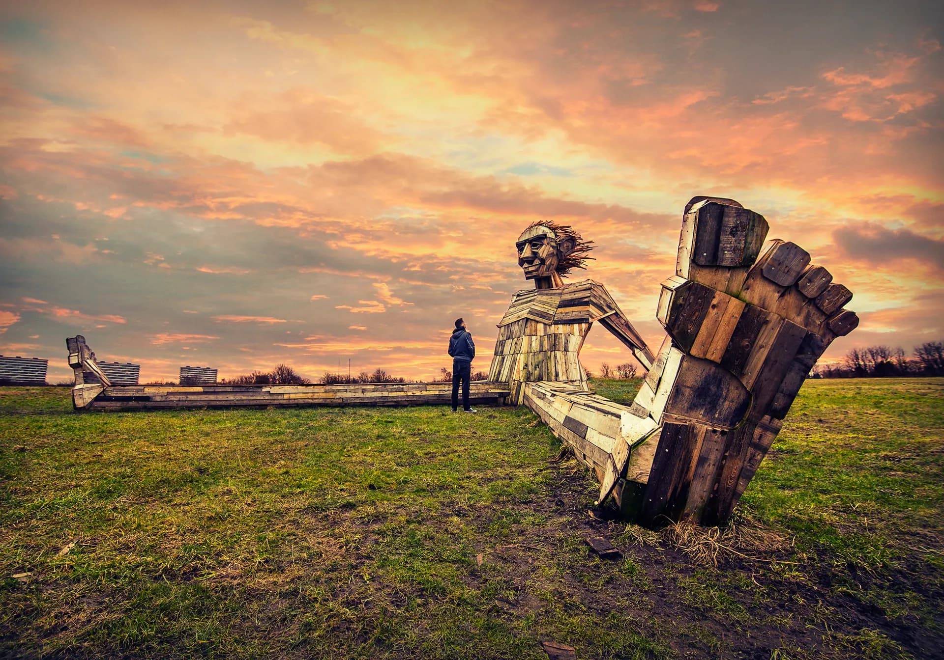 Wer Kopenhagens nachhaltigste Sehenswürdigkeiten besichtigen möchte, der darf sich den Besuch der womöglich freundlichsten Riesen der Welt nicht entgehen lassen - die sechs Holzskulpturen von Thomas Dambo. Sie verstecken sich in den Wäldern der Kopenhagener Vororte Rødovre, Hvidovre, Vallensbæk, Ishøj, Albertslund und Høje Taastrup.