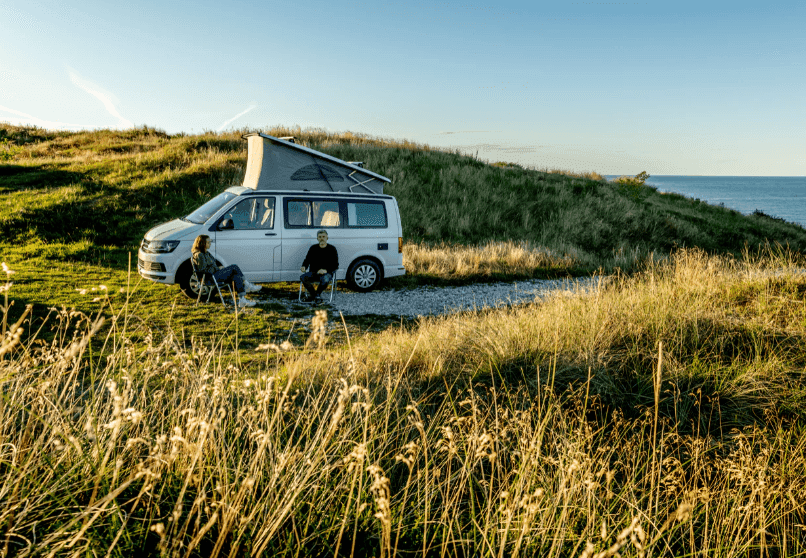 In Dänemark dürfen Sie nur auf den offiziellen Campingplätzen campen. Auf den Meerblick müssen Sie trotzdem nicht verzichten. Und falls Sie einmal so richtig in die Natur abtauchen möchten, gibt es in Dänemark mehr als 300 sehr einfache Unterstände – so genannte Shelter, wo Sie übernachten können. Lassen Sie Ihren Van auf einem offiziellen Campingplatz stehen und schlagen Sie draußen in der Natur Ihr Zelt auf.