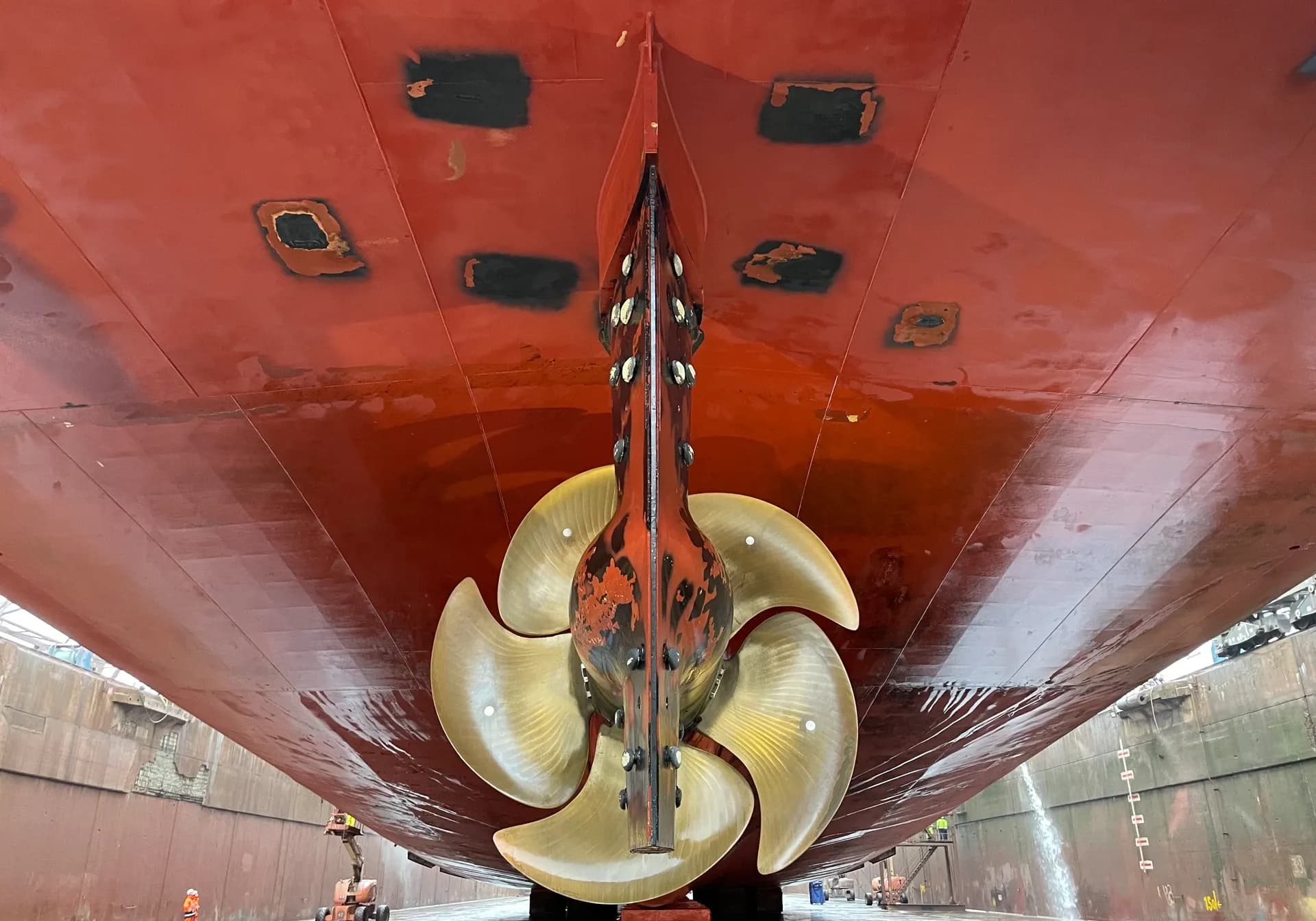 Der bisherige Mittelpropeller mit einem Durchmesser von 4,6 Metern wurde somit nicht optimal genutzt und wir entschieden uns daher, die fünf Propellerblätter durch kleinere Blätter zu ersetzen, so dass der Mittelpropeller nun einen Durchmesser von 4,2 Metern hat. Dies verbessert nicht nur die Effizienz, sondern vermindert auch Vibrationen und das Risiko von Bodenschäden.